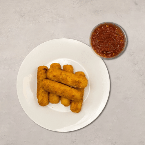 Verse frites met gesmolten cheddar cheese, afgetopt met bosui, krokante gebakken uitjes en crispy chicken tenders
